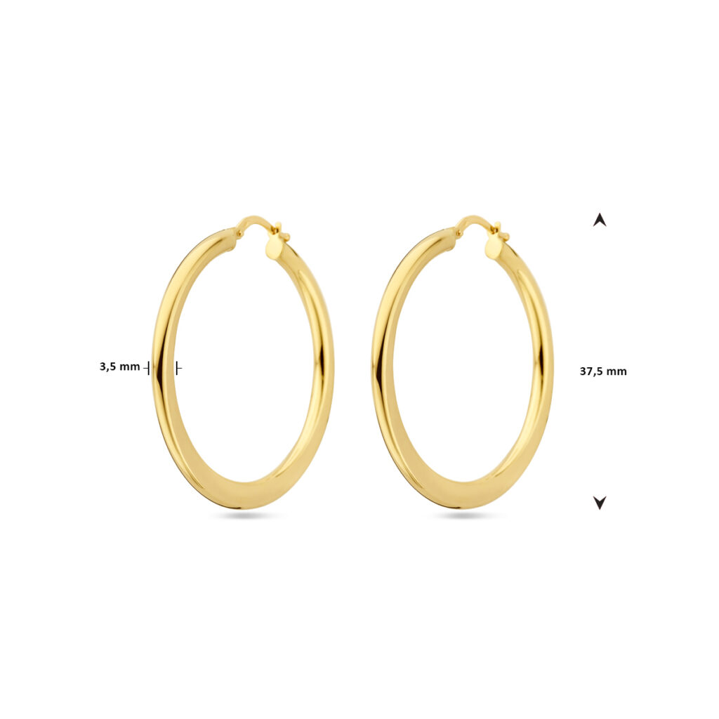 14k Geelgouden oorringen met een dikte van 3.5mm.