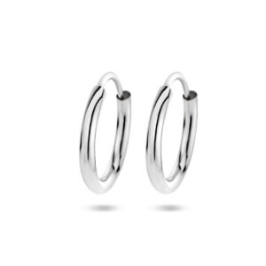 Gerhodineerd zilveren oorringen met een ronde buis en een scharnier-sluiting.