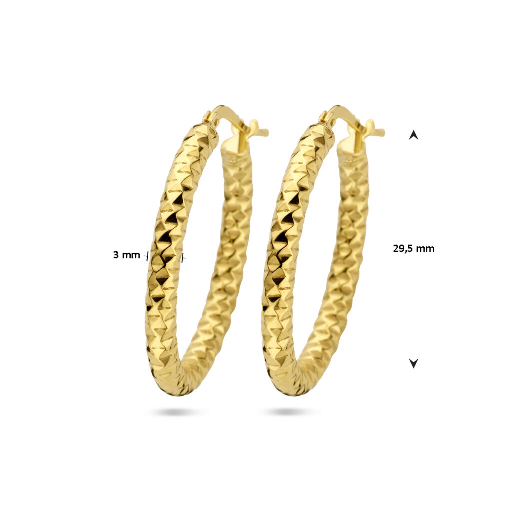 Geelgoud op 925 zilveren oorringen. De oorringen hebben een totale hoogte van 29.5 mm.