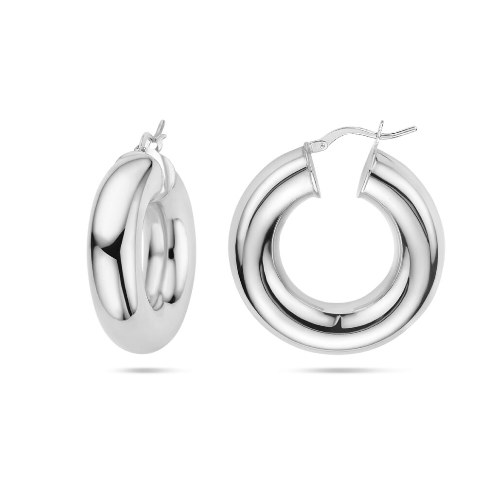 Gerhodineerd 925 zilveren oorringen met een ronde buis. De oorringen hebben een dikte van 8.5mm.