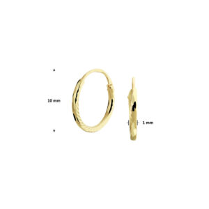 Geelgouden oorringen met een gediamanteerde afwerking en een diameter van 10mm. Minimalistisch design voor een exclusieve uitstraling. Tip: Combineer deze oorringen met bijpassende sieraden uit onze collectie of vanuit je eigen stash en creeer zo elke keer weer een nieuwe look.