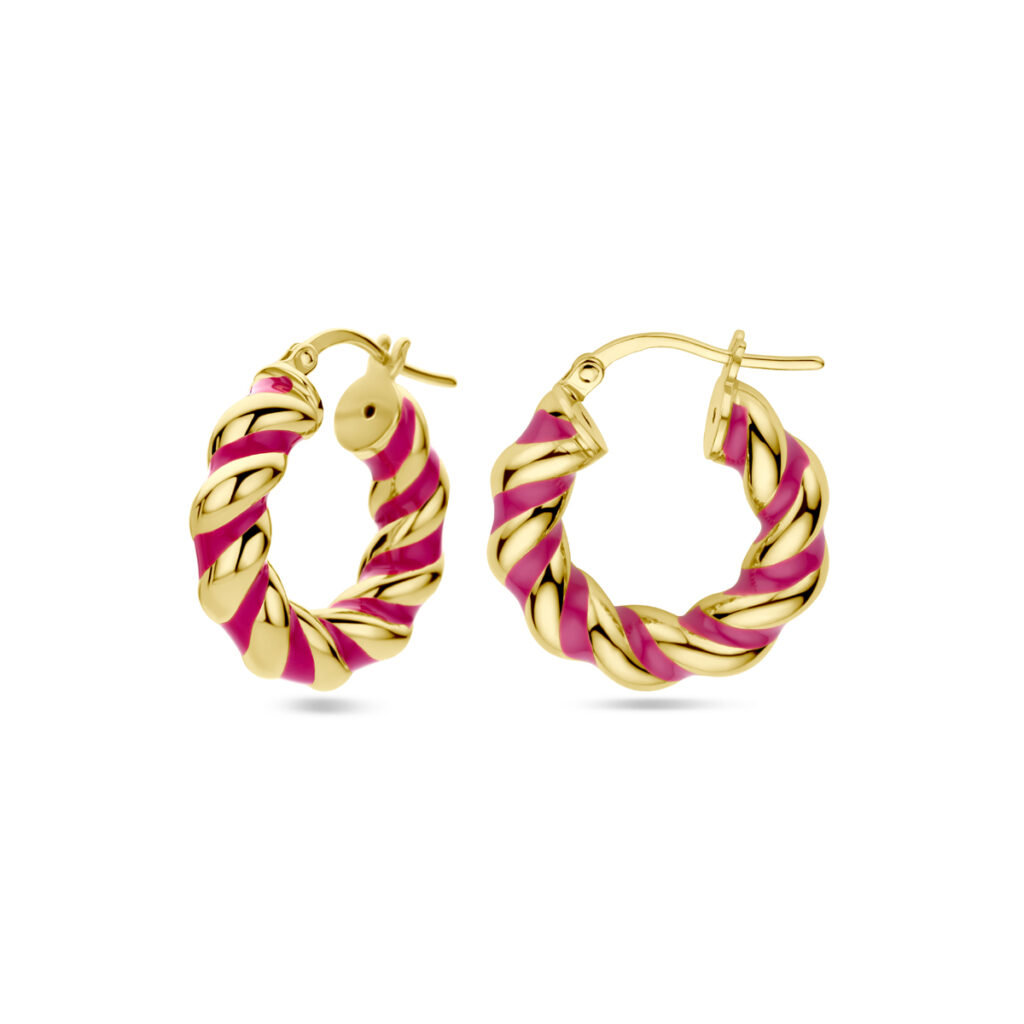 Oorringen Gedraaid Roze Emaille 1 Micron Zilver Verguld (Geel)