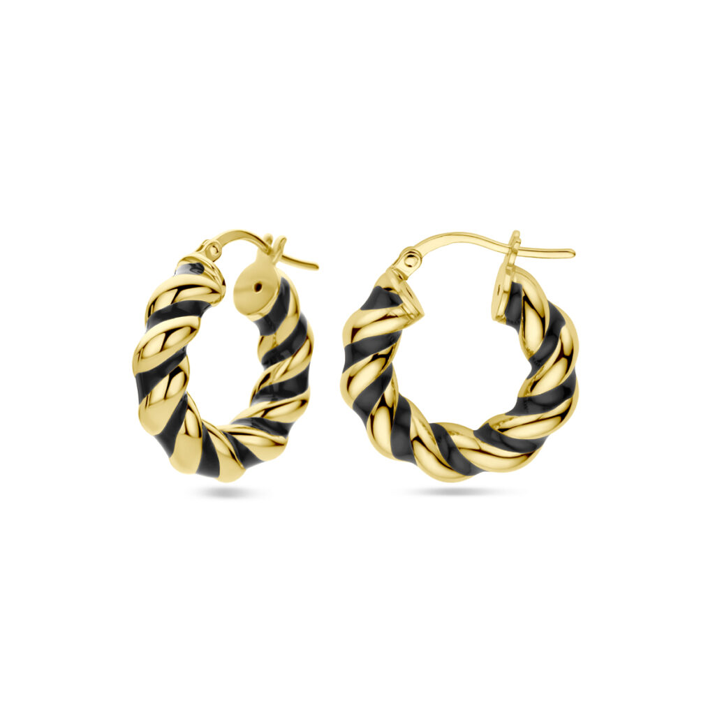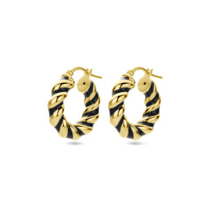 Oorringen Gedraaid Zwart Emaille 1 Micron Zilver Verguld (Geel)