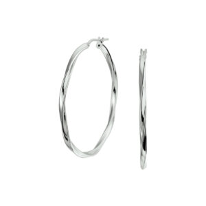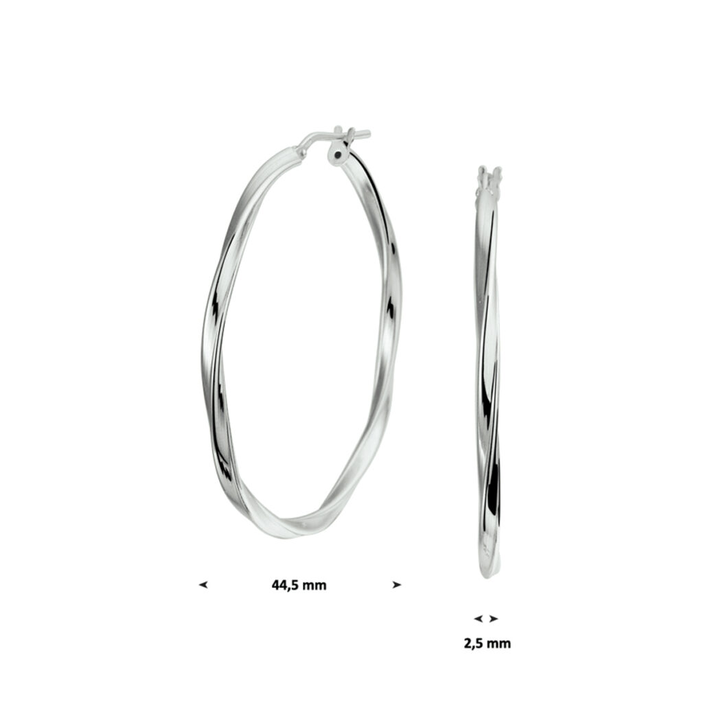 Gerhodineerd zilveren oorringen met een afmeting van 44.5×2.5mm uitgevoerd met een gedraaide buis en stevige scharnier sluiting.