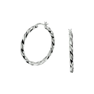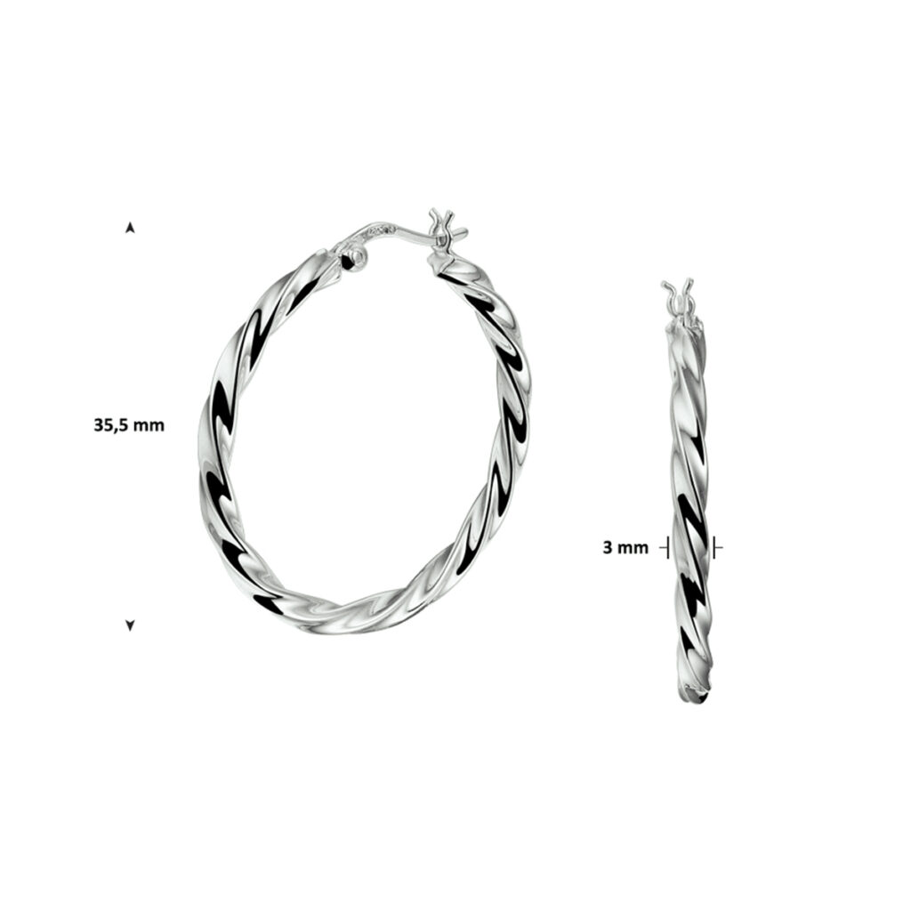 Klassieke gerhodineerd zilveren oorringen met een afmeting van 35.5x3mm uitgevoerd met een gedraaide buis en een stevige scharnier sluiting. Info: Gerhodineerd zilver is door de rhodiumlaag beter bestand tegen verkleuren en krassen.