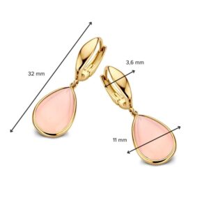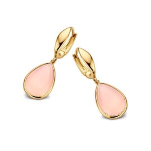 Deze creolen zijn afkomstig van het merk Excellent Jewelry dat alweer 25 jaar een toonaangevende Nederlandse sieradenleverancier en vaste partner van vele Nederlandse juweliershuizen is. Zo zijn deze creolen gemaakt van geelgoud van de allerbeste kwaliteit en bestaan deze uit een slanke strook geelgoud met daaronder een druppelvormig plaatje met aan de voorkant een facetgeslepen roze chalcedoon die mooi glinstert. Deze creolen zijn voorzien van een scharniersluiting waardoor u deze gemakkelijk in- en uitdoet. De creolen hebben een lengte van 31mm met een breedte van 11mm en een gewicht van 4,6 gram.