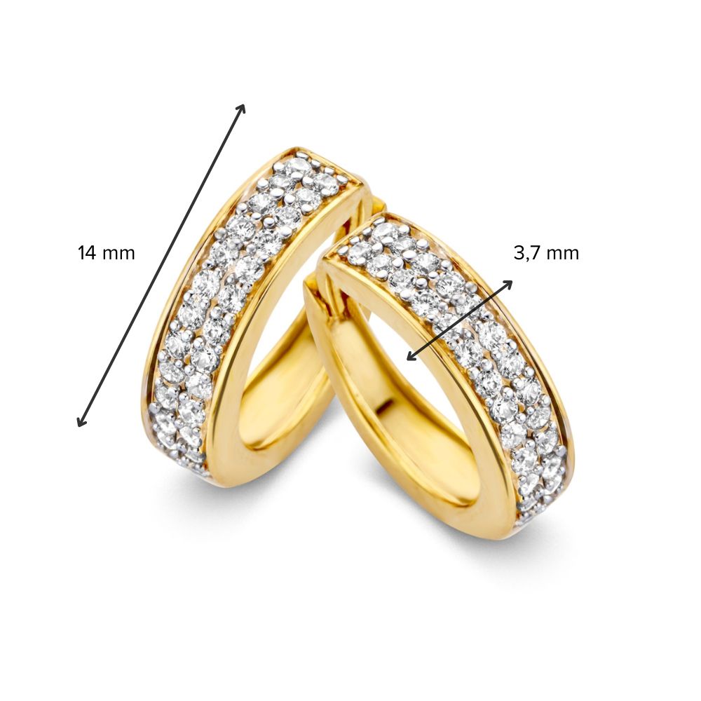Ontdek de schitterende geelgouden creolen van Excellent Jewelry, met sprankelende zirkonia’s: perfect voor elke gelegenheid!