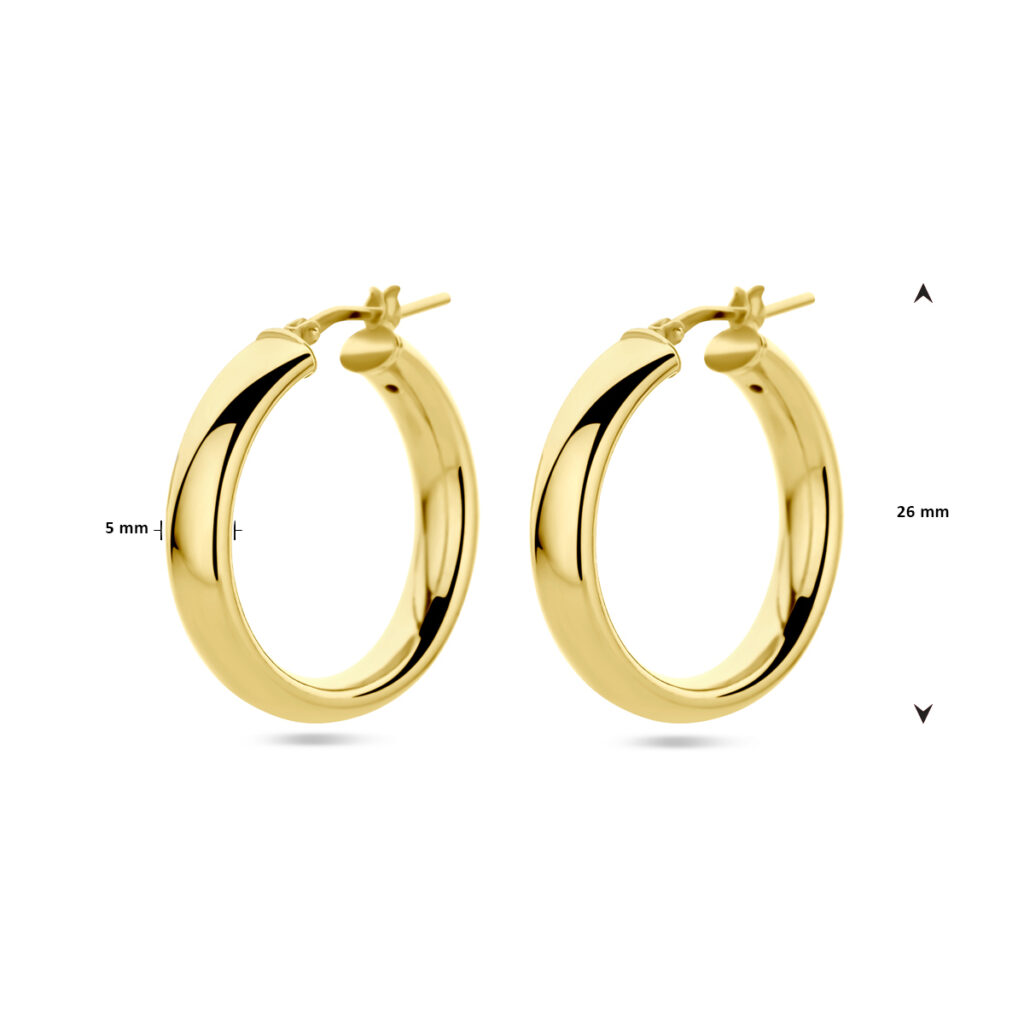 Geelgoud op 925 zilveren oorringen met een afmeting van 26x5mm.