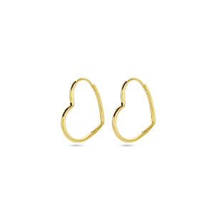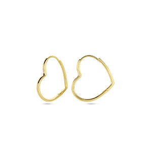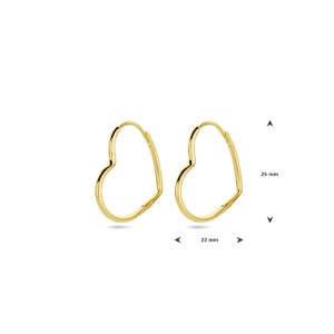 Geelgoud op 925 zilveren oorringen in de vorm van een hart. De oorringen hebben een afmeting van 22x25mm.