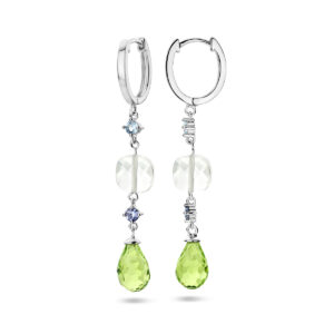 Deze Zilveren Klapoorringen met Kleurstenen en Zirkonia’s zijn vervaardigd uit 925 Sterling zilver, dat is voorzien van een coating van Rhodium. De klapcreolen hebben een breedte van 2 mm bij een diameter van 14,5 mm. De klapoorringen hebben een metaalgewicht van circa 4,5 gram. De totale hoogte van deze oorringen bedraagt 53 mm en is opgebouwd uit de creool, 2 maal een licht blauwe synthetische Spinel steen, met daartussen een ronde kraal van witte Zirkonia steen met een diameter van 8 mm en onderaan een druppelvormige hanger van Tanzaniet Zirkonia steen met een lengte van 14 mm en een breedte van 7 mm.