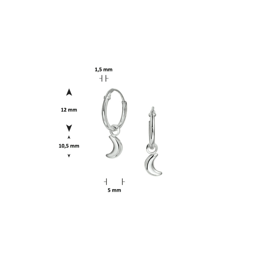Gerhodineerd zilveren oorringen met een afmeting van 12×1.5mm uitgevoerd met een ster van 10.5x5mm. De oorringen zijn ook verkrijgbaar in diameters 23.5mm en 33mm en in varianten met een hart ster of driehoek.