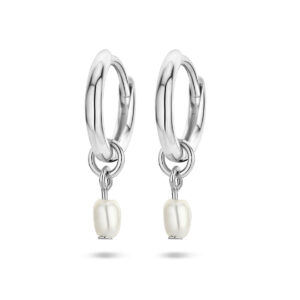 Gerhodineerd 925 zilveren oorringen uitgevoerd met een schitterende zoetwaterparel.