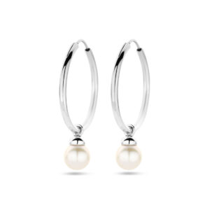 Gerhodineerd 925 zilveren oorringen uitgevoerd met een zoetwaterparel. De oorringen hebben een totale hoogte van 35mm.