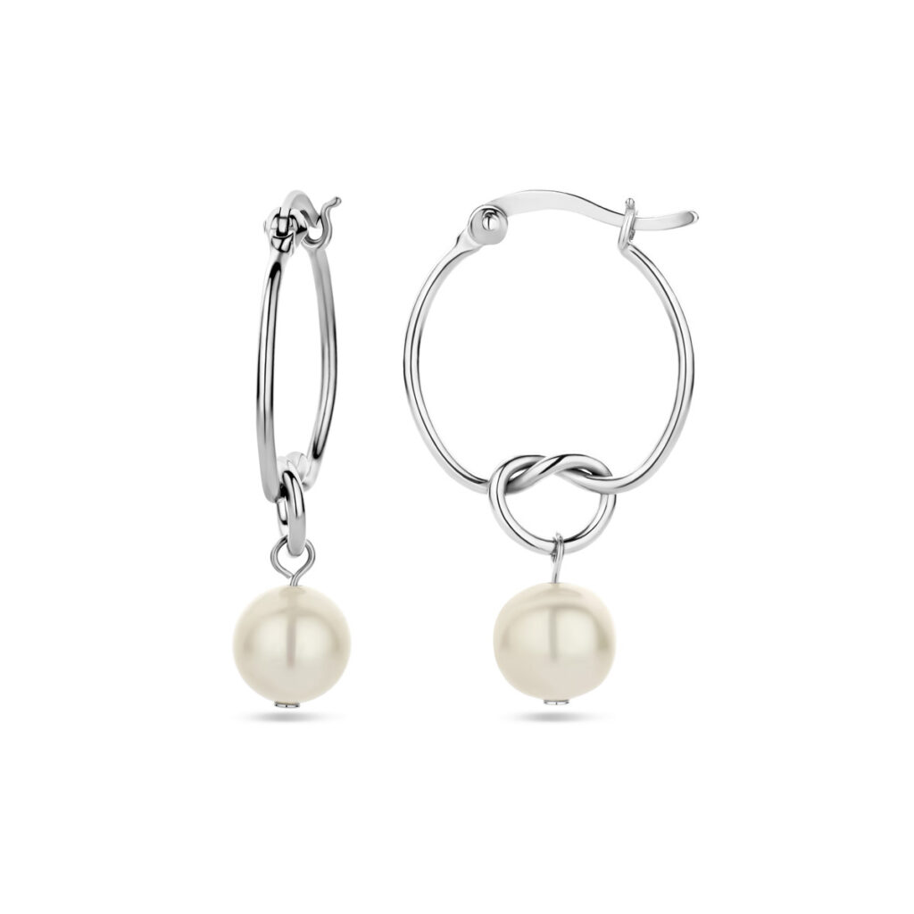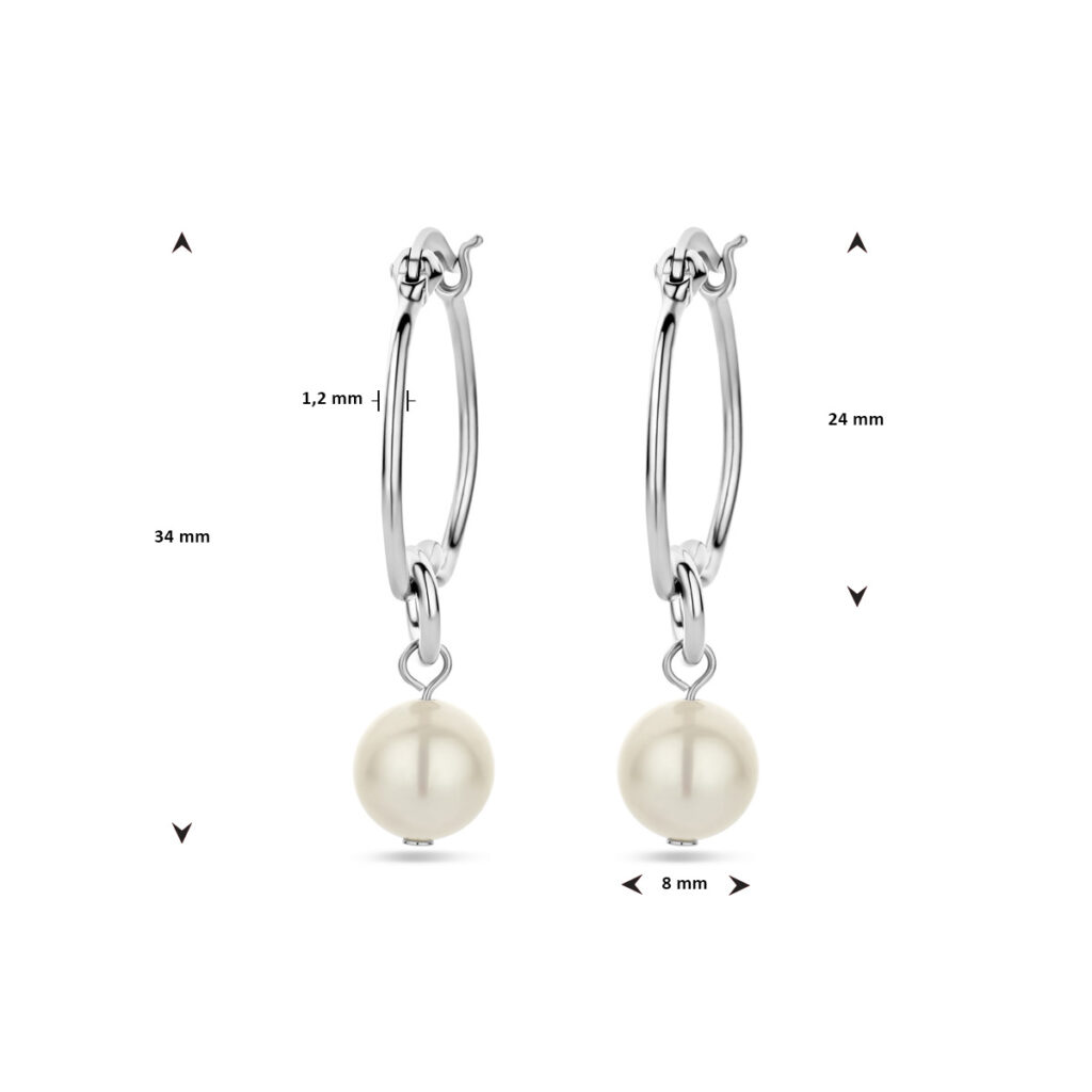 Gerhodineerd 925 zilveren oorringen uitgevoerd met parel. De oorringen hebben een totale hoogte van 34mm.