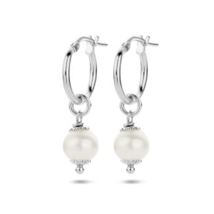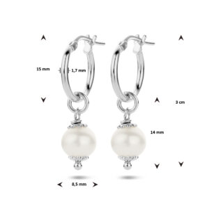 Gerhodineerd 925 zilveren oorringen uitgevoerd met een zoetwaterparel van 8.5mm. De oorringen hebben een diameter van 15mm.