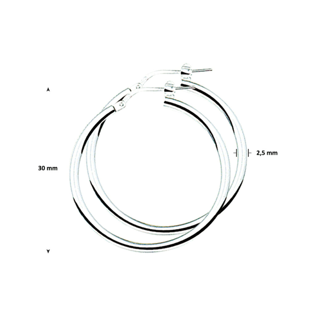 Gerhodineerd zilveren oorringen met een ronde buis en een hefboom-sluiting.