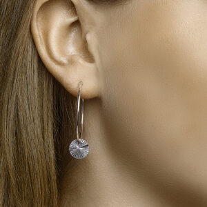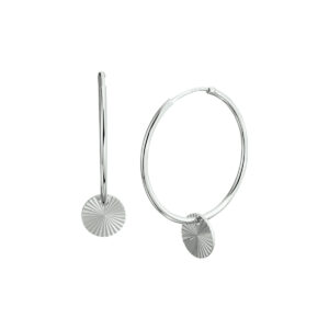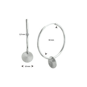 Gerhodineerd 925 zilveren oorringen uitgevoerd met een hanger in de vorm van een rondje. De hanger heeft een diameter van 10mm.