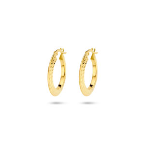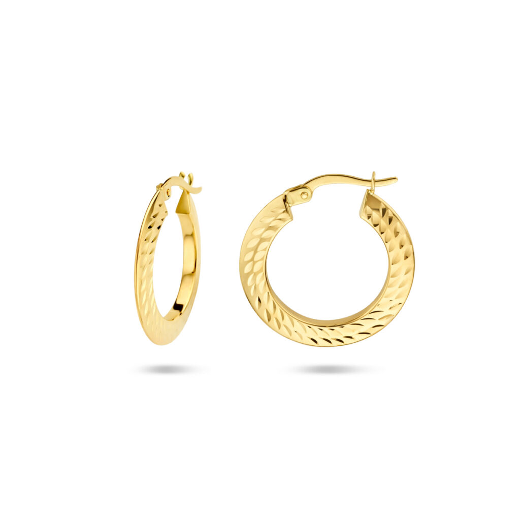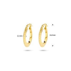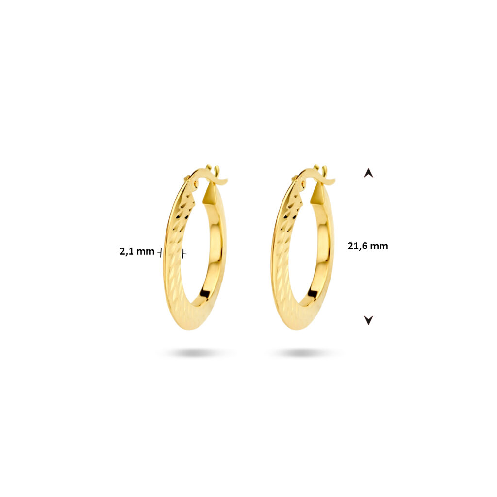 14k Geelgouden oorringen met een spitse buis. De oorringen hebben een diameter van 21.6mm.