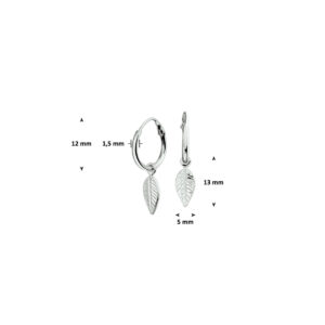 Gerhodineerd zilveren oorringen met een afmeting van 12×1.5mm uitgevoerd met veren van 13x5mm.