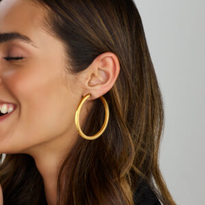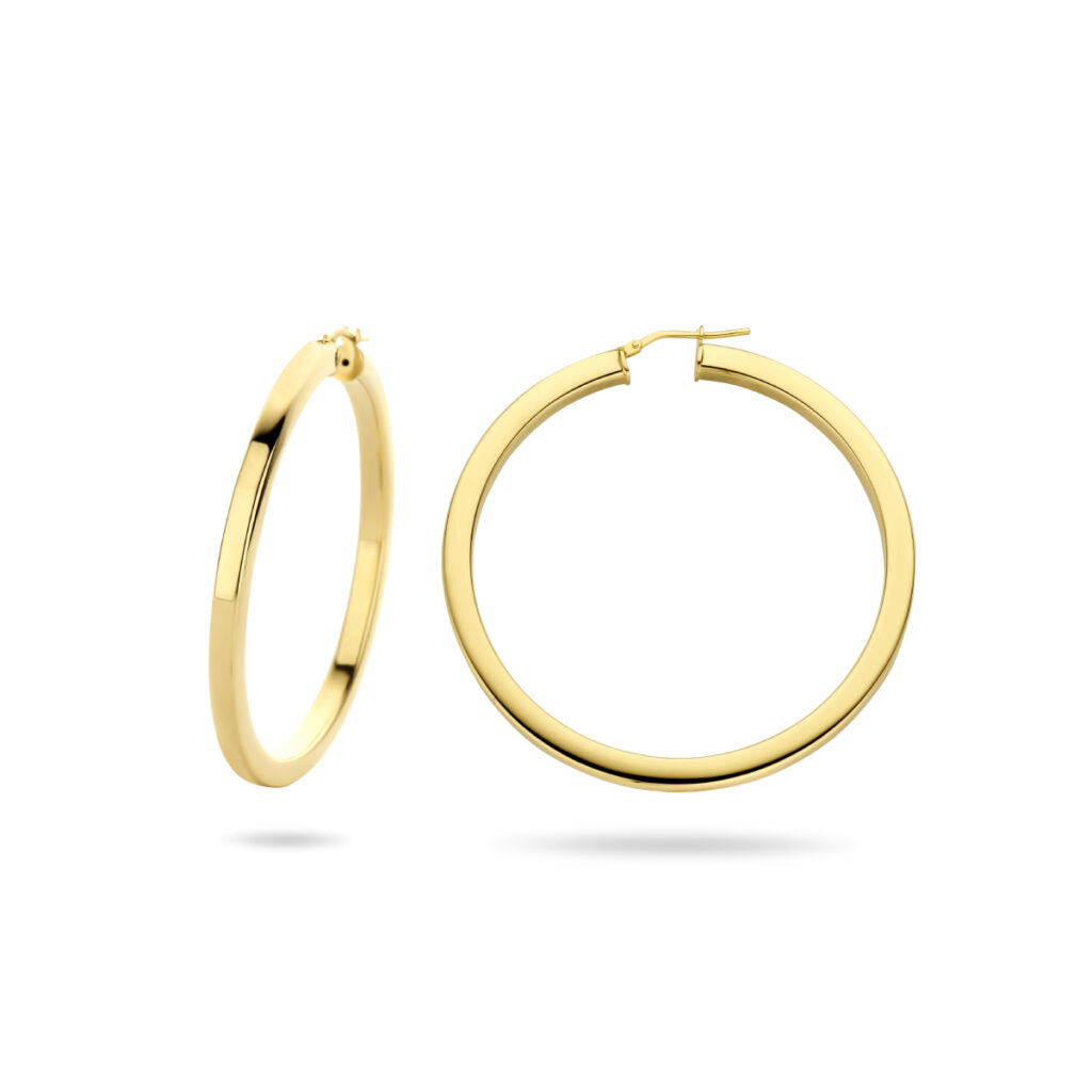 Geelgoud op 925 zilveren oorringen met een vierkante buis. De oorringen hebben een dikte van 4mm.