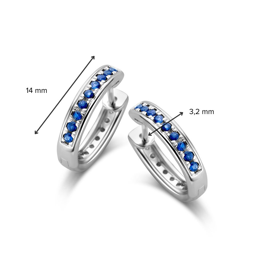 Deze oorringen zijn afkomstig van het merk Excellent Jewelry dat alweer 25 jaar een toonaangevende Nederlandse sieradenleverancier en vaste partner van vele Nederlandse juweliershuizen is. Deze oorringen zijn gemaakt van witgoud van de allerbeste kwaliteit en bestaan uit een slanke, licht bolstaande strook die in een opengewerkte cirkel is gelegd, met een scharnier en een slanke steker die u gemakkelijk door uw oor steekt. De oorringen zijn aan weerszijden voorzien van meerdere saffieren en diamanten die mooi glinsteren. Deze diamanten en saffieren hebben samen een samenstelling van 0,24crt. en 0,30crt. respectievelijk. Daarnaast zijn de diamanten voorzien van een mooie briljante slijpvorm. Deze oorringen hebben een gewicht van 3,4 gram met een breedte van 3,3mm en een diameter van 12mm.