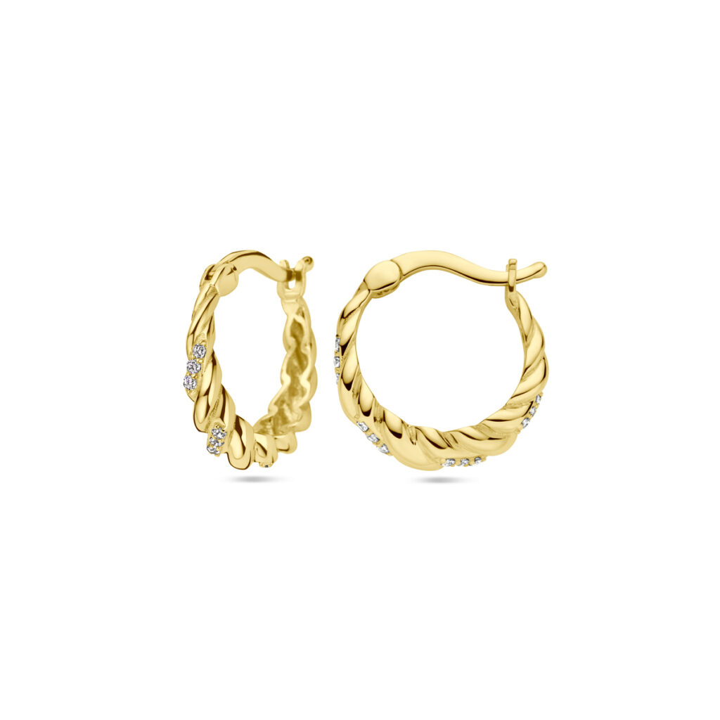 14k Geelgouden oorringen uitgevoerd met zirkonia. De oorringen hebben een afmeting van 15.5x4mm.
