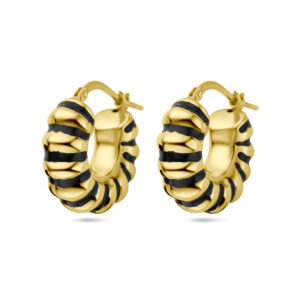 Geelgoud op 925 zilveren oorringen uitgevoerd met zwart emaille. De oorringen hebben een afmeting van 19x8mm.