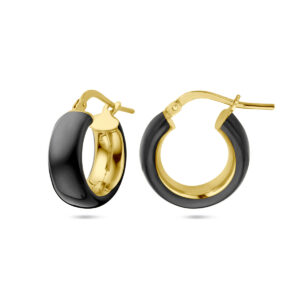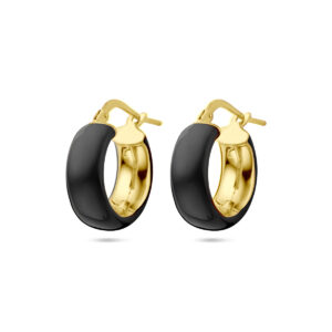 Geelgoud op 925 zilveren oorringen uitgevoerd met zwart emaille. De oorringen hebben een afmeting van 18x6mm.