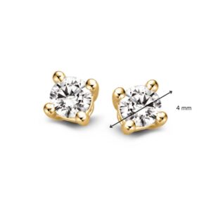 Deze oorstekers zijn afkomstig van het merk Excellent Jewelry dat alweer 25 jaar een toonaangevende Nederlandse sieradenleverancier en vaste partner van vele Nederlandse juweliershuizen is. Zo zijn deze oorstekers gemaakt van geelgoud van de allerbeste kwaliteit en bestaan deze uit een geelgouden plaatje met vier pootjes die een beeldschone 0,25 crt. briljant omklemmen die mooi glinstert. Aan de achterkant is de oorsteker voorzien van een slanke steker die u gemakkelijk door uw oor steekt met een handige sluiting. De oorstekers hebben een breedte van 4,3mm en een gewicht van 1,0 gram.
