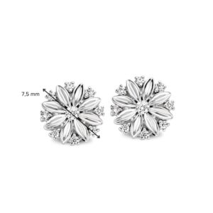 Deze oorstekers zijn afkomstig van het merk Excellent Jewelry dat alweer 25 jaar een toonaangevende Nederlandse sieradenleverancier en vaste partner van vele Nederlandse juweliershuizen is. Deze oorstekers zijn gemaakt van witgoud van de allerbeste kwaliteit en bestaan uit een rond plaatje met in het midden een bloemvorm met acht blaadjes, die langs de rand voorzien is van meerdere kleurloze diamanten die mooi glinsteren. Deze diamanten hebben een totaal karaatgehalte van 0,09crt. met een briljante slijpvorm. De oorstekers zijn aan de achterkant voorzien van een slanke steker die u gemakkelijk door uw oor steekt. Deze oorstekers hebben een gewicht van 1,5 gram met een diameter van 7,5mm.