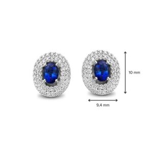 Deze oorstekers zijn afkomstig van het merk Excellent Jewelry dat alweer 25 jaar een toonaangevende Nederlandse sieradenleverancier en vaste partner van vele Nederlandse juweliershuizen is. Deze oorstekers zijn gemaakt van witgoud van de allerbeste kwaliteit en bestaan uit een ovaalvormig plaatje dat volledig bedekt is met meerdere kleurloze diamanten die mooi glinsteren, met in het midden een blauwe saffier als kopstuk. De diamanten hebben een totaal karaatgehalte van 0,34crt. terwijl de saffier een karaatgehalte heeft van 0,70crt.. Aan de achterkant zit een slanke steker die u gemakkelijk door uw oor steekt. Deze oorstekers hebben een gewicht van 2,8 gram met een lengte van 10,3mm en een breedte van 9,3mm.