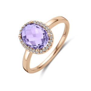 Ring Amethist En Diamant 0.10Ct H Si 14K Roségoud