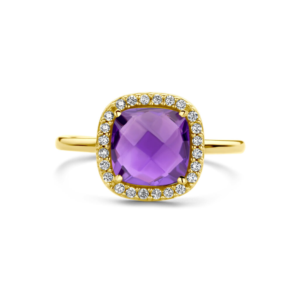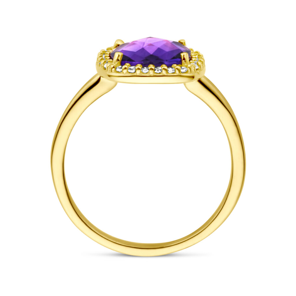 Ring Amethist En Zirkonia Halo 14K Geelgoud