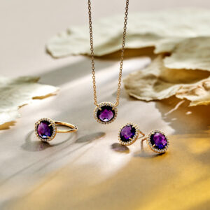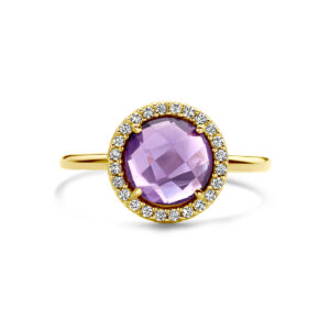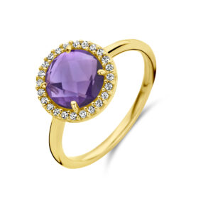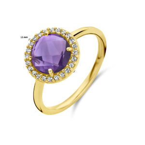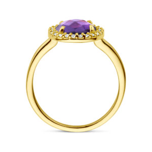 Ring Amethist En Zirkonia Halo 14K Geelgoud