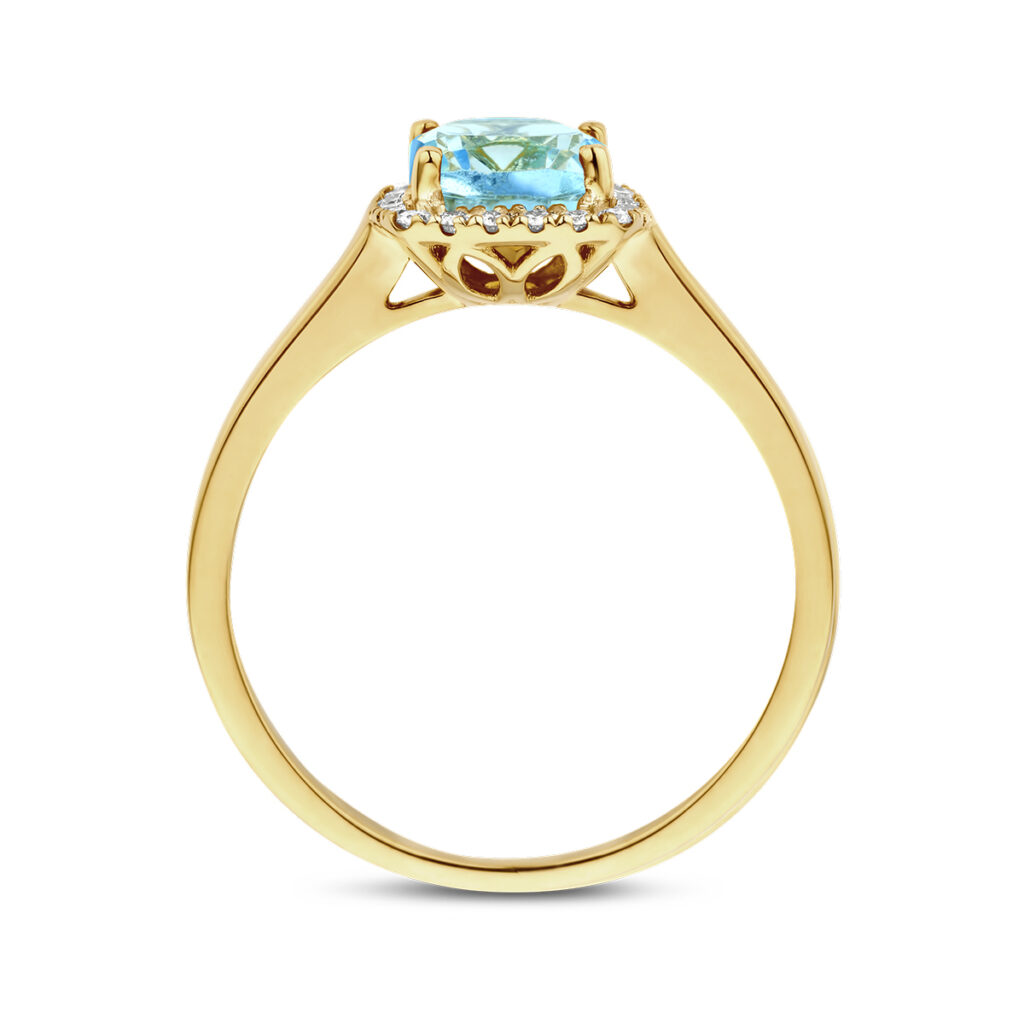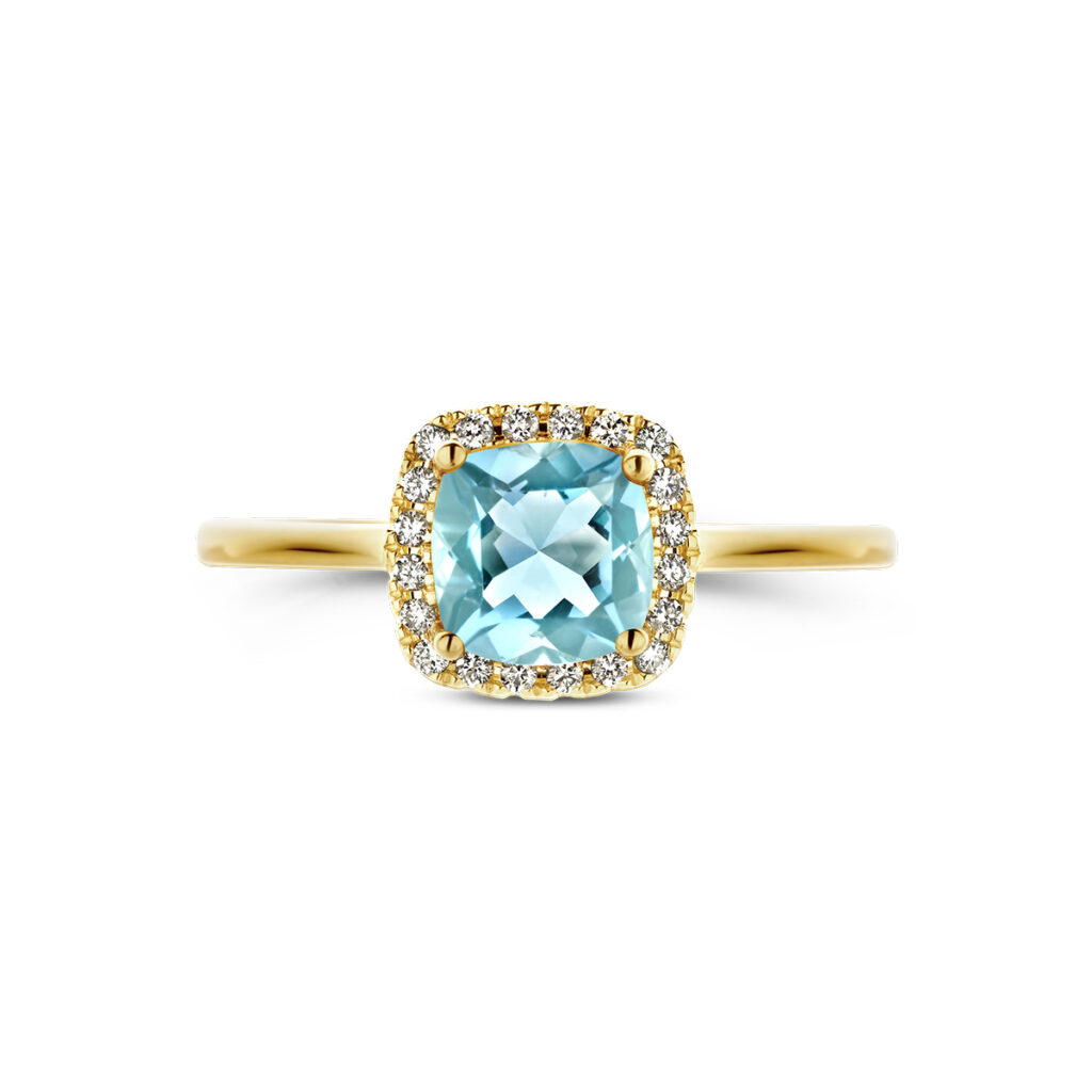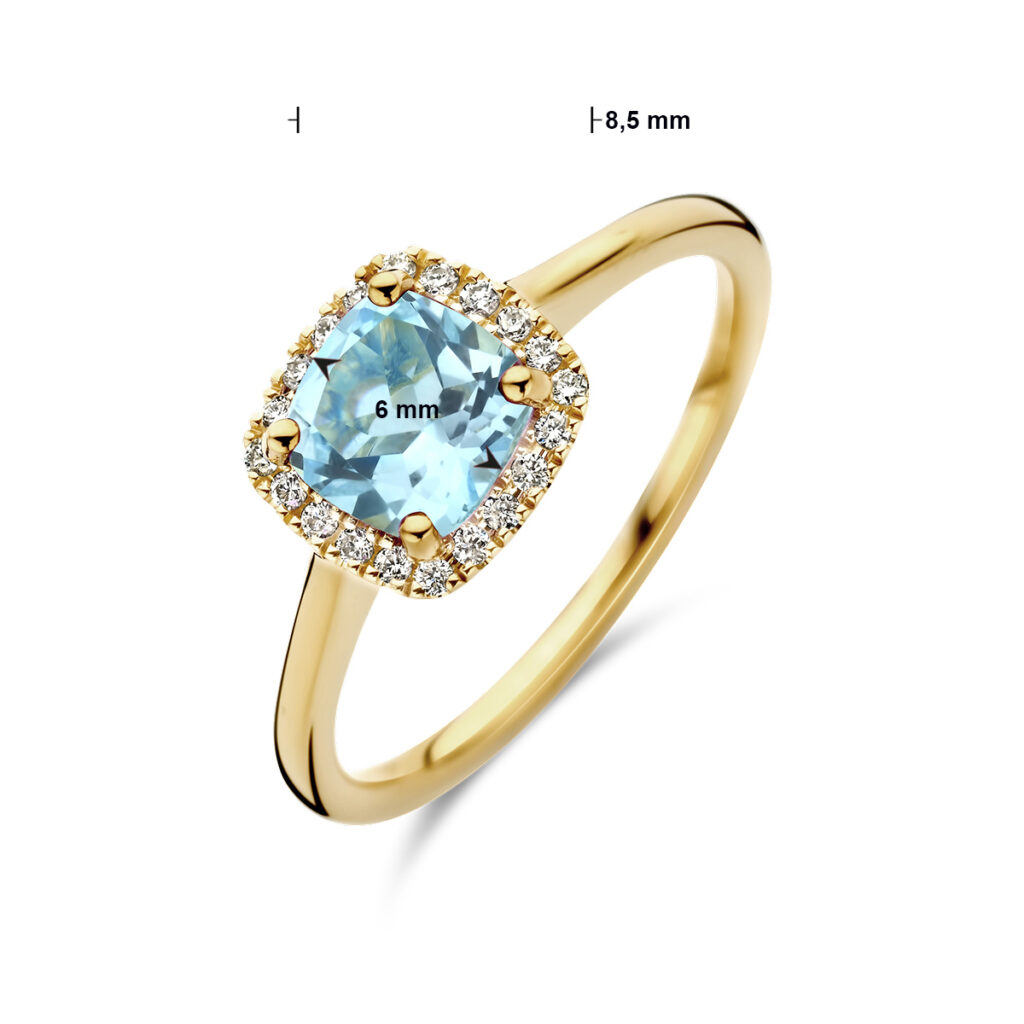 Ring Blauw Topaas En Diamant 0.10Ct H Si 14K Geelgoud