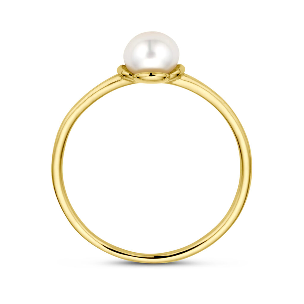14k Geelgouden ring uitgevoerd met een parel. De ring heeft een breedte van 6.5mm.