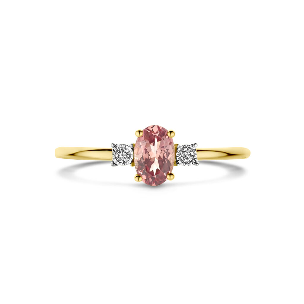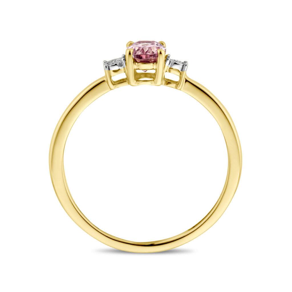 Ring Champagne Granaat En Diamant 0.03Ct H Si 14K Geelgoud
