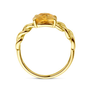14k Geelgouden ring met schakelmotief, uitgevoerd met een citrine. De ring heeft een breedte van 8mm.