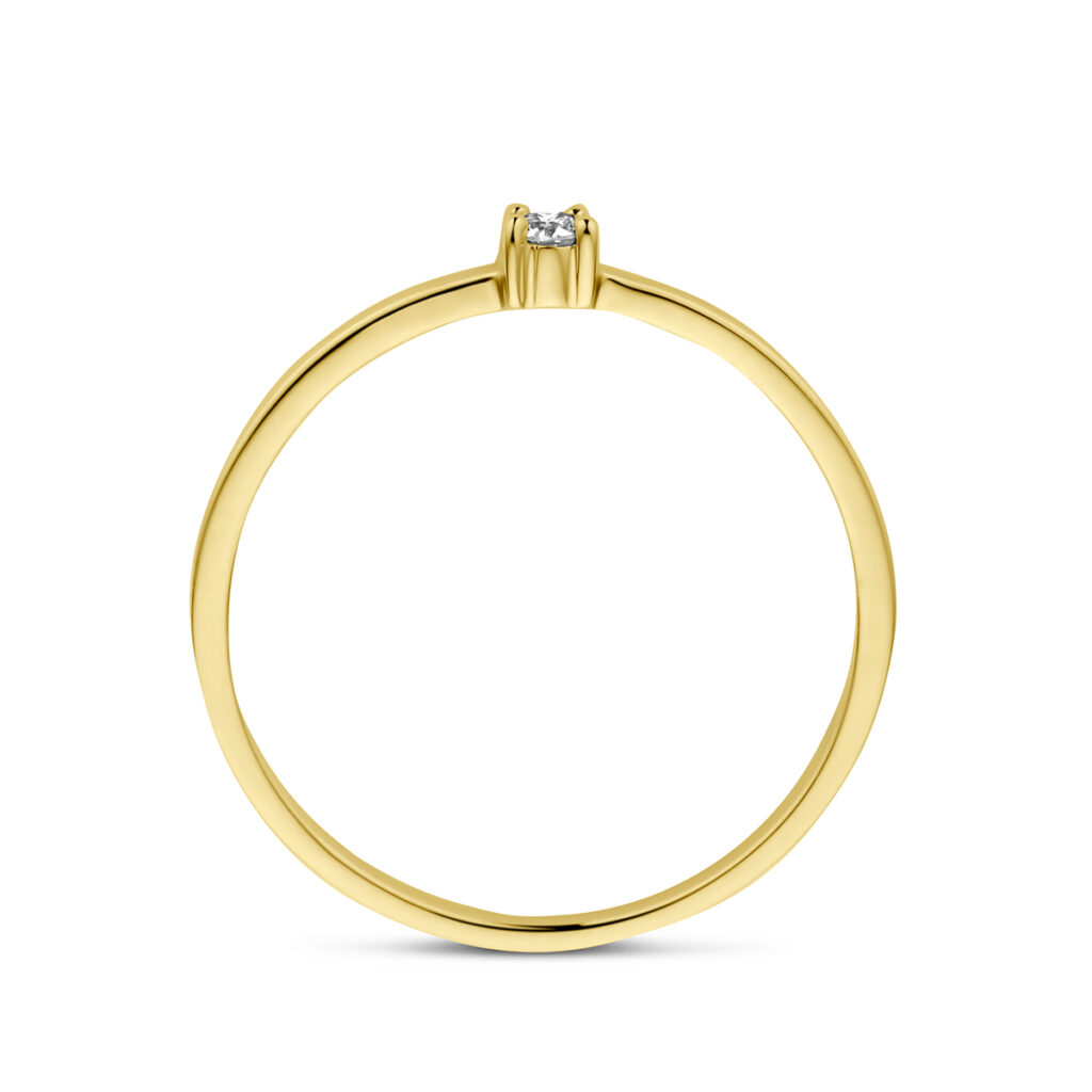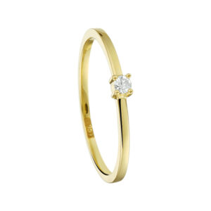 14k Geelgouden ring uitgevoerd met een schitterende diamant. De ring heeft een breedte van 2.3mm.