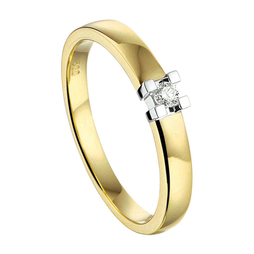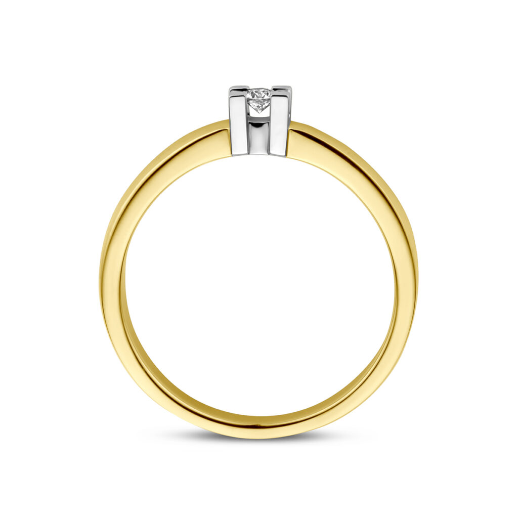 Ring Diamant 0.05Ct H Si 14K Bicolor Goud Geel/Wit