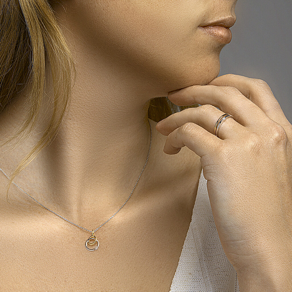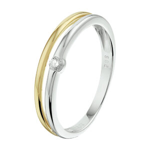 Ring Diamant 0.05Ct H Si 14K Bicolor Goud Geel/Wit