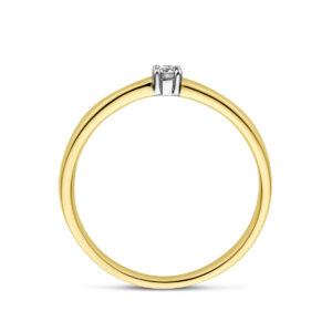 14k Bicolor geel- en witgouden ring uitgevoerd met een schitterende diamant. De ring heeft een breedte van 2.5mm.