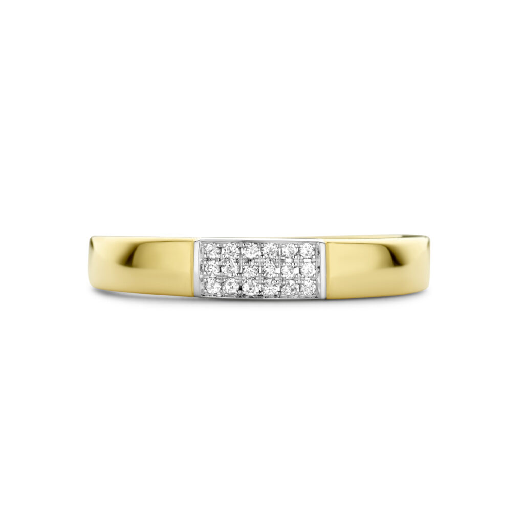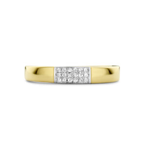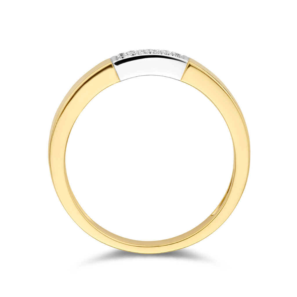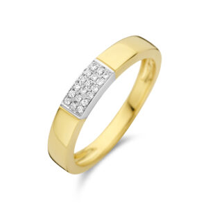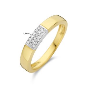 14k Bicolor geel- en witgouden ring uitgevoerd met schitterende diamanten. De ring heeft een breedte van 3.5mm en een diamantgewicht van 0.07ct.