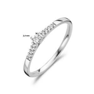 14k Witgouden ring uitgevoerd met een schitterende diamant rij. De ring heeft een breedte van 2.4mm en de solitair diamant heeft een diamantgewicht van 0.04ct.
