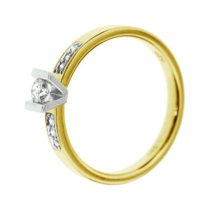 Ring Diamant 0.085Ct H Si 14K Bicolor Goud Geel/Wit