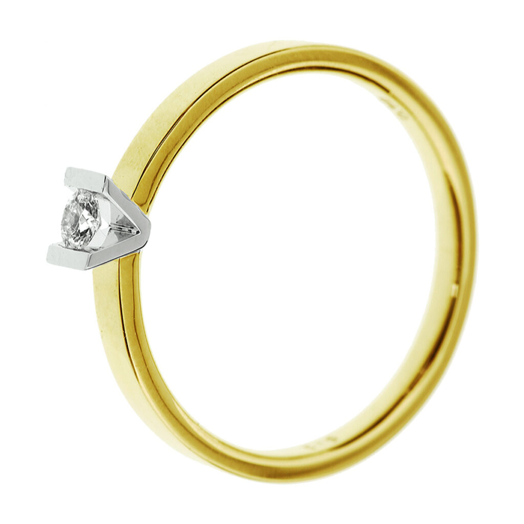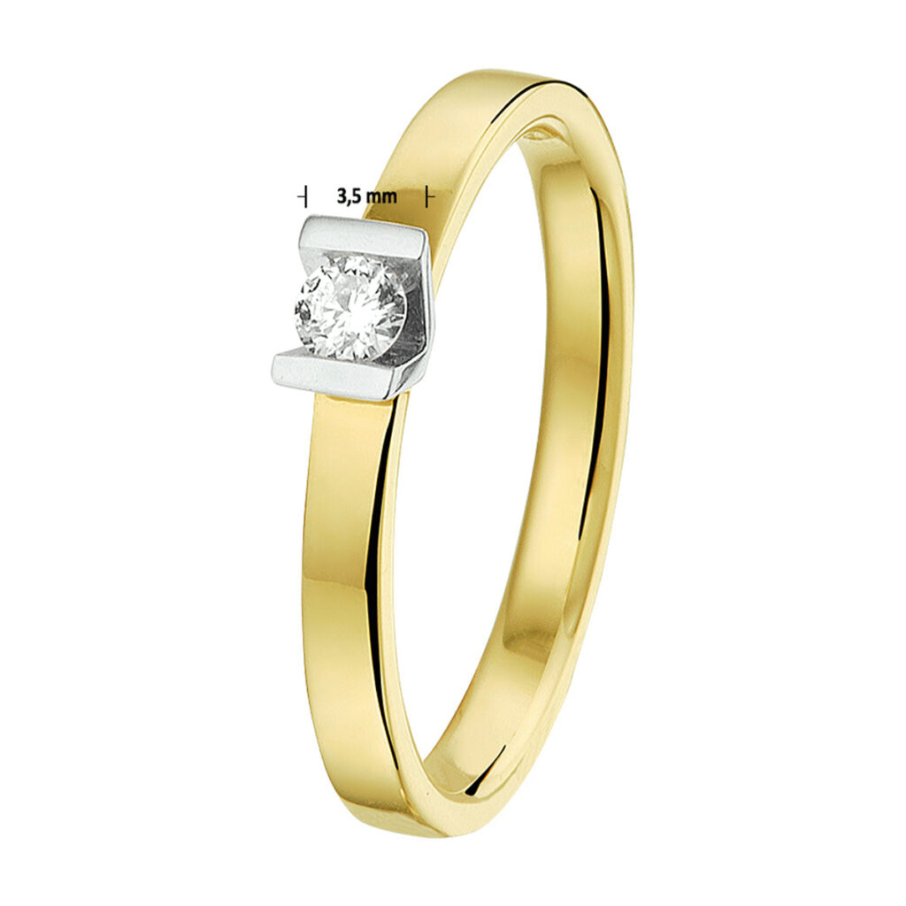 Ring Diamant 0.10Ct H Si 14K Bicolor Goud Geel/Wit