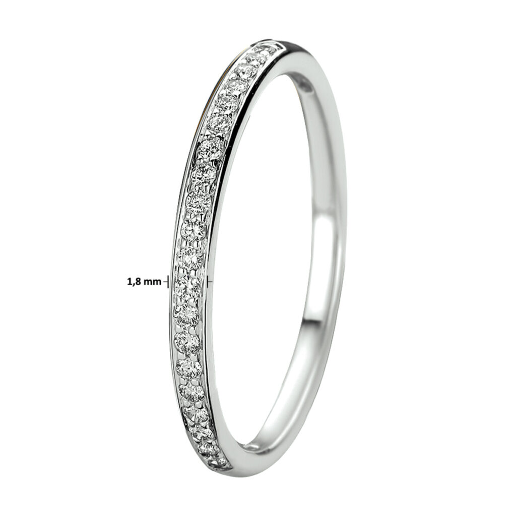 14k Witgouden ring uitgevoerd met een schitterende diamant rij. De ring heeft een breedte van 1.8mm.