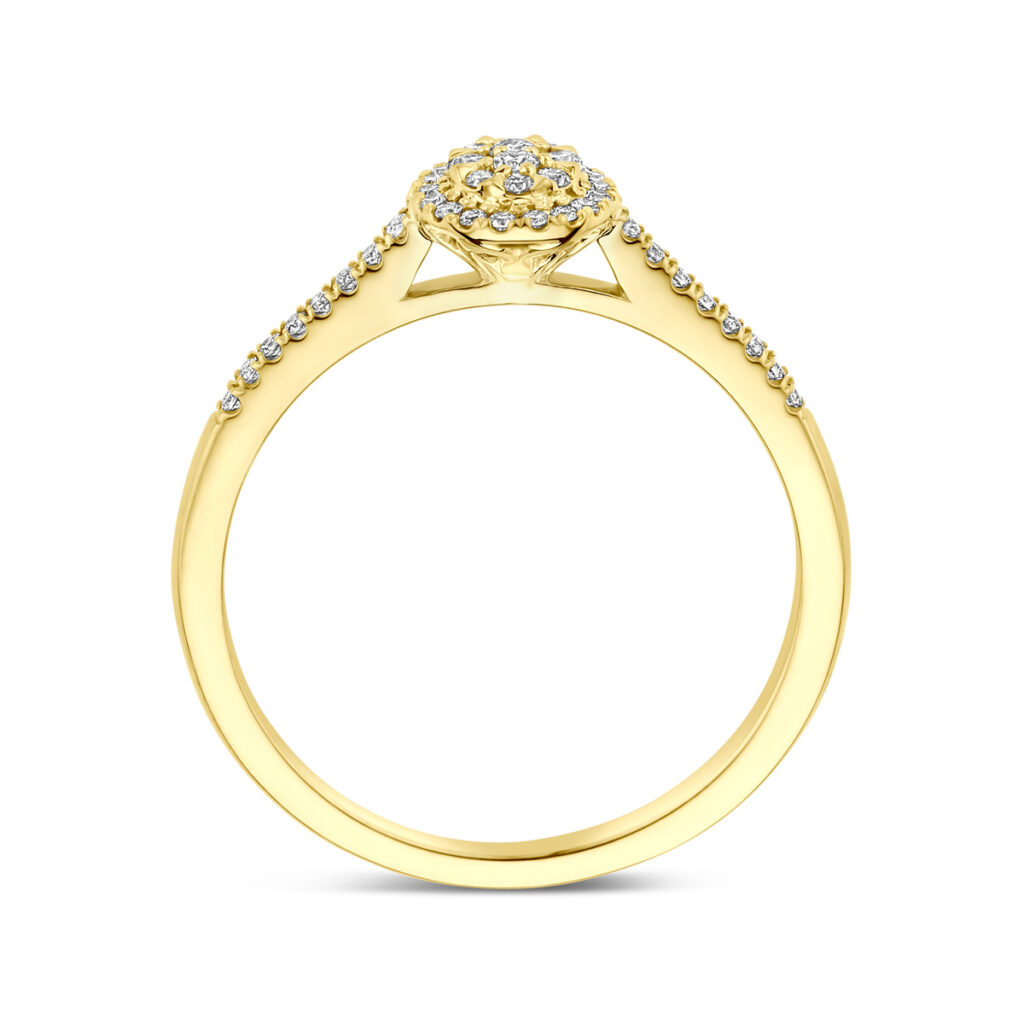 14k Geelgouden ring uitgevoerd met diamant. De ring heeft een afmeting van 7.5x6mm. Het totale diamantgewicht is 0.18ct.
