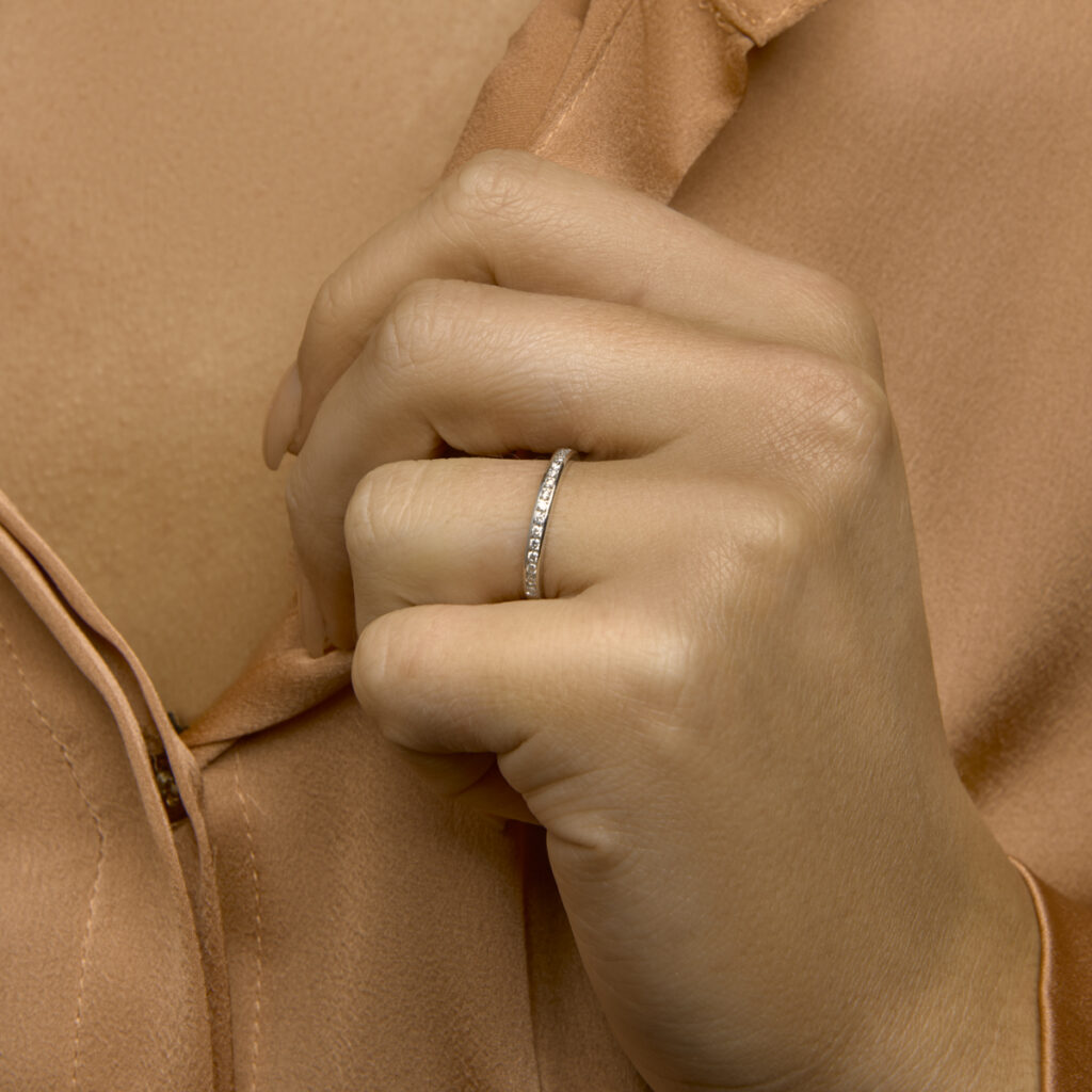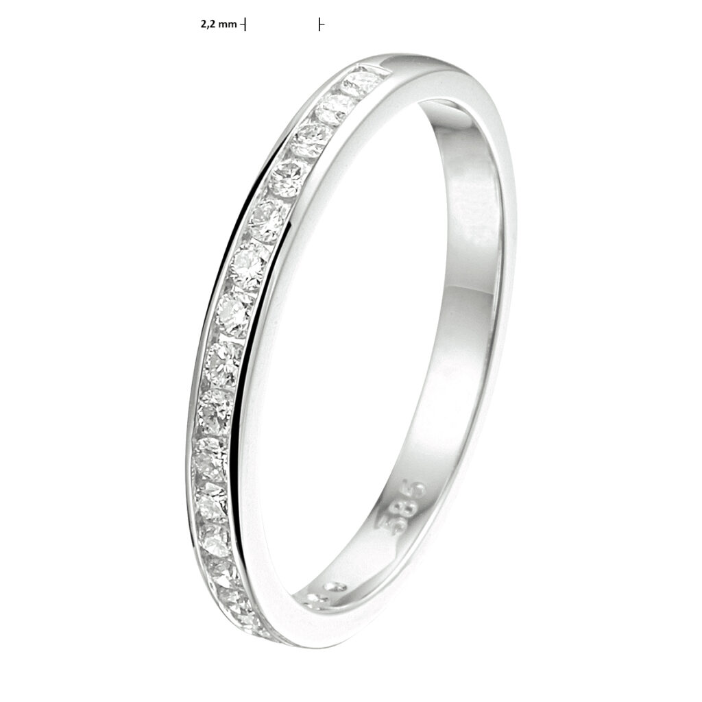 14k Witgouden ring met palladium legering. De ring is uitgevoerd met een schitterende diamant rij en heeft een breedte van 2.2mm.