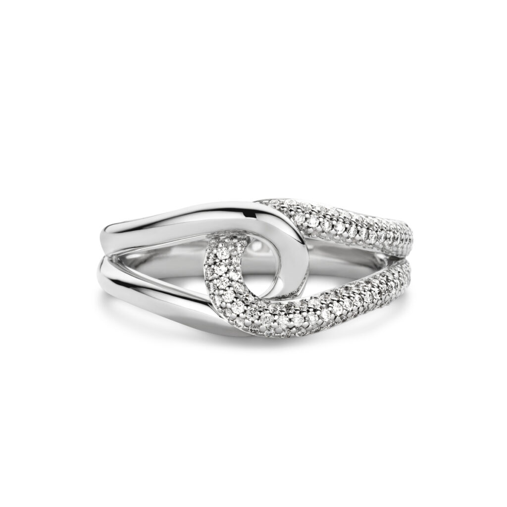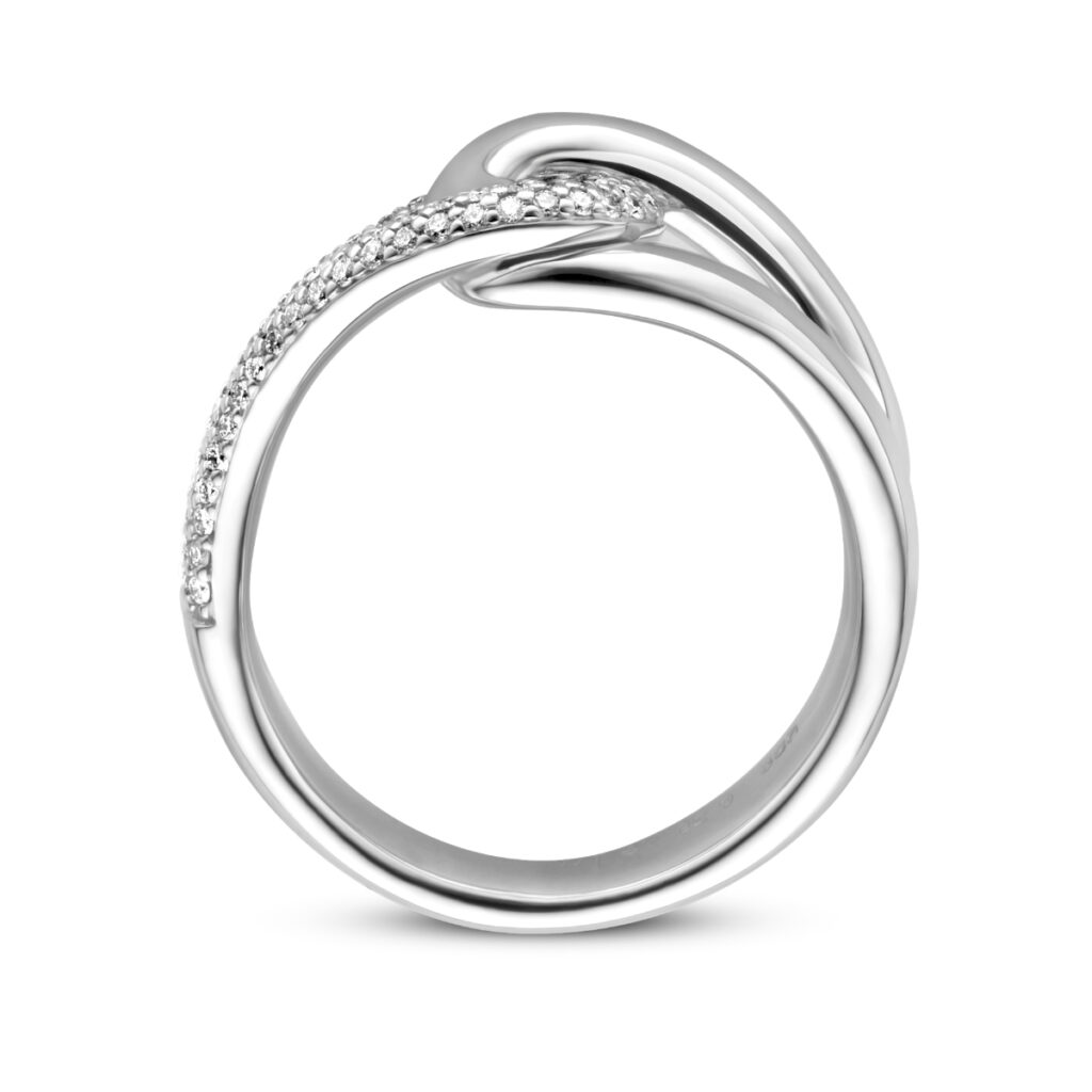 14k Witgouden ring uitgevoerd met schitterende diamanten. De ring heeft een breedte van 9.5mm en het diamantgewicht is 0.29ct.